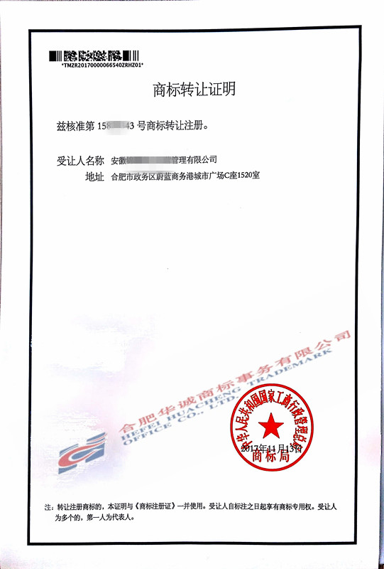 您委托我所代理“15828343”号商标转让申请核准转让证明下达。